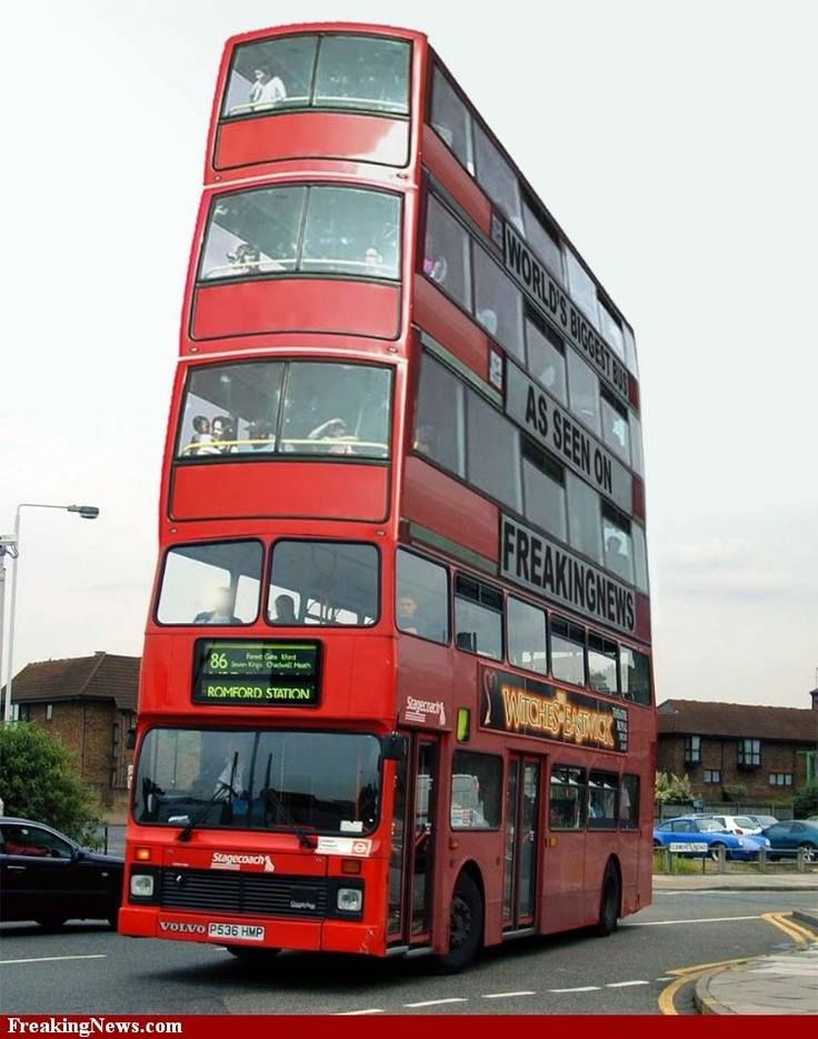 Гигантомания с автобусами диктовалась (да и сейчас диктуется) перегруженностью многих городских улиц транспортом. Дополнительные автобусные маршруты открыть в таких условиях сложно. Остается наращивать вместимость автобусов за счет повышения этажности, дополнительных секций. Двухэтажные автобусы уже давно используются в ряде стран. Про трехэтажные ничего не знаю. Видимо, их нет еще по той причине, что ширина улиц остается прежней, а с увеличением высоты автобуса уменьшится его устойчивость — видь шасси останется то же самое.