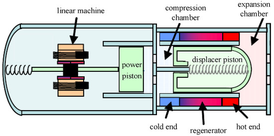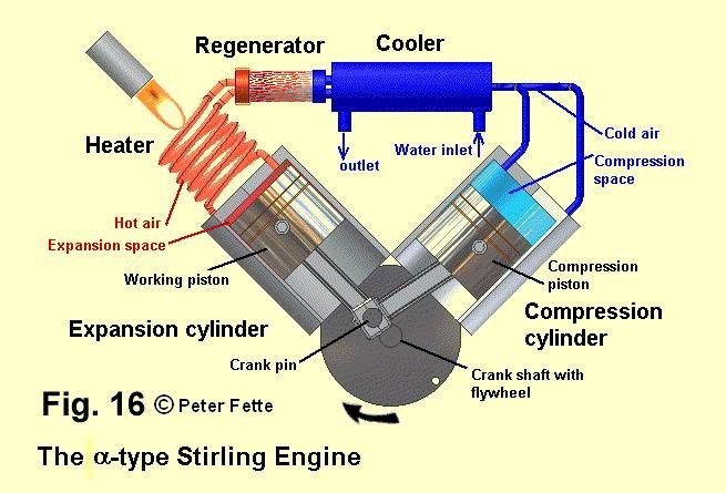 Это направляет газ через регенератор (где он забирает тепло, накопленное там во время предыдущего цикла) и в нагретый цилиндр. В этот момент цикл начинается снова.