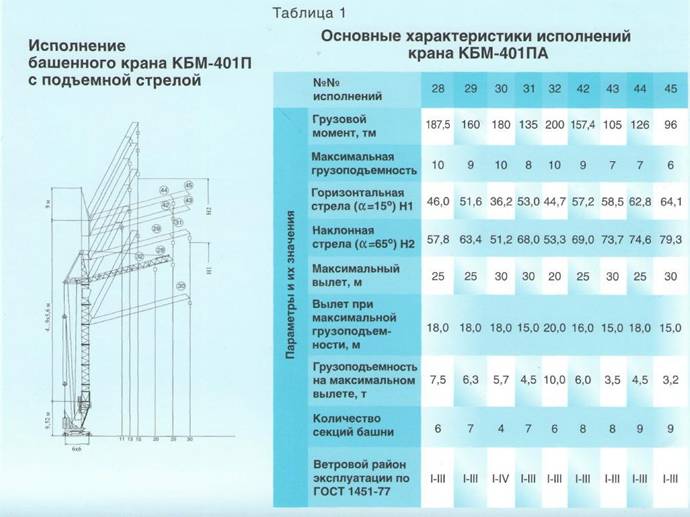 | Высота подъема свободностоящего крана, м | 40 | 46 | 45 | 45 |