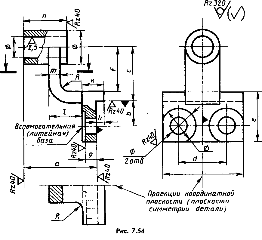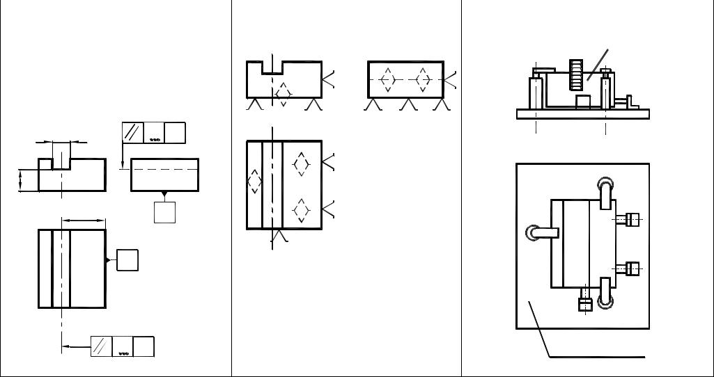 следующие знаки _/\_-опорные точки в виде спереди и сбоку детали; -♦- — опорные