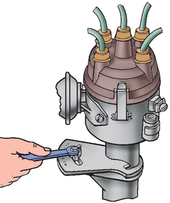 - 4. Ослабьте болт крепления пластины октан-корректора к корпусу датчика-распределителя.