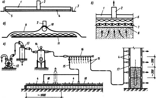 В таких случаях вакуумная обработка бетона может включать удаление избытка воды и воздуха путем всасывания. Вакуумная система бетона, использующая всасывание через поверхностный слой, соединенная с вакуумным насосом, показана на рис. 14.2.