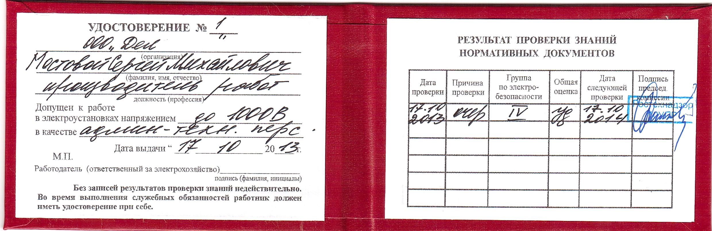 9.4.20. Результаты аттестации и периодической проверки знаний обслуживающего персонала должны оформляться протоколом с отметкой в удостоверении.