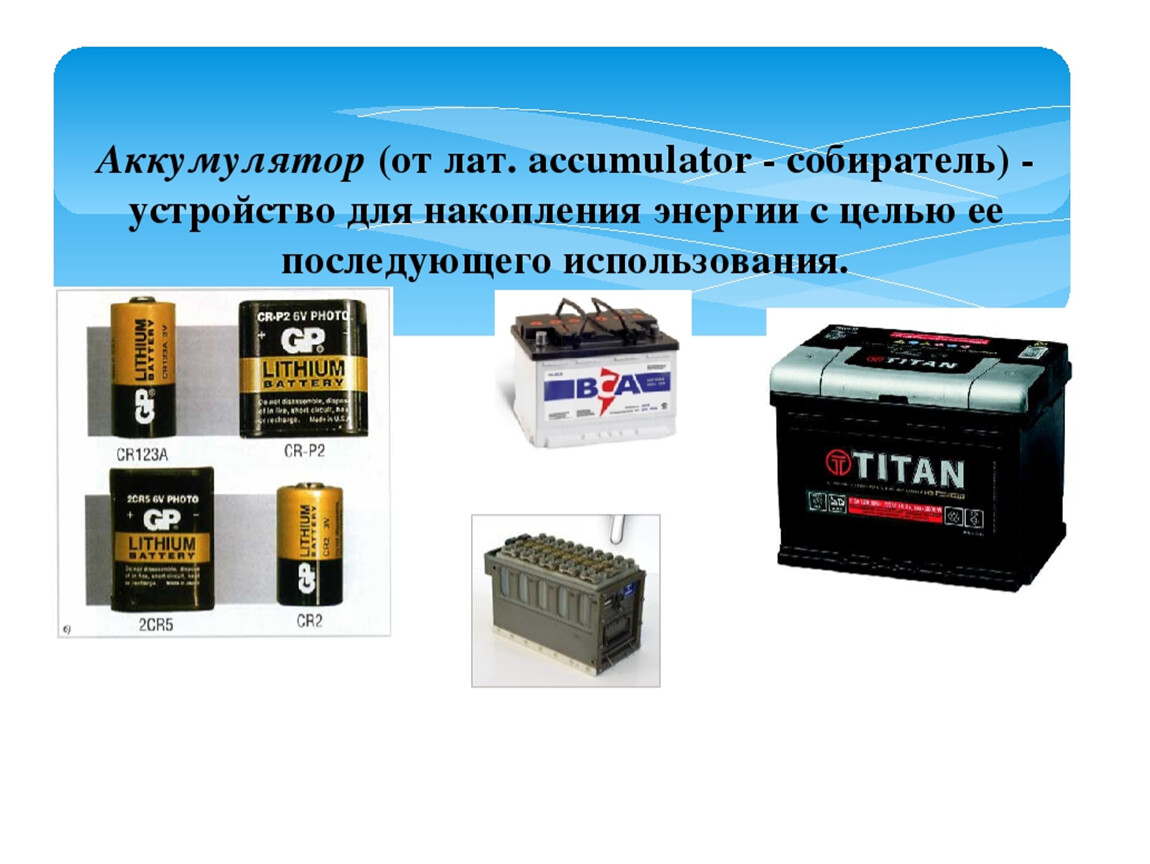 В наше время в мире выпускаются аккумуляторы различных типов. Вот далеко не полный список: свинцово-кислотные, медно-литиевые, никель-кадмиевые, никель-металлогидридные, железо-никелевые, серно-натриевые, серебряно-цинковые, серебряно-кадмиевые, литий-ионные, литий-полимерные, никель-водородные, марганцево-цинковые.
