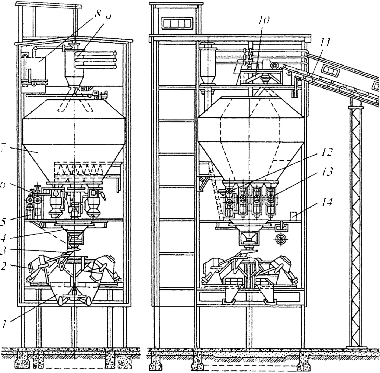 - Весовые бункеры-дозаторы 1 500 кг, тип взвешивания индивидуально для каждого бункера — 3 шт — 2 комплекта