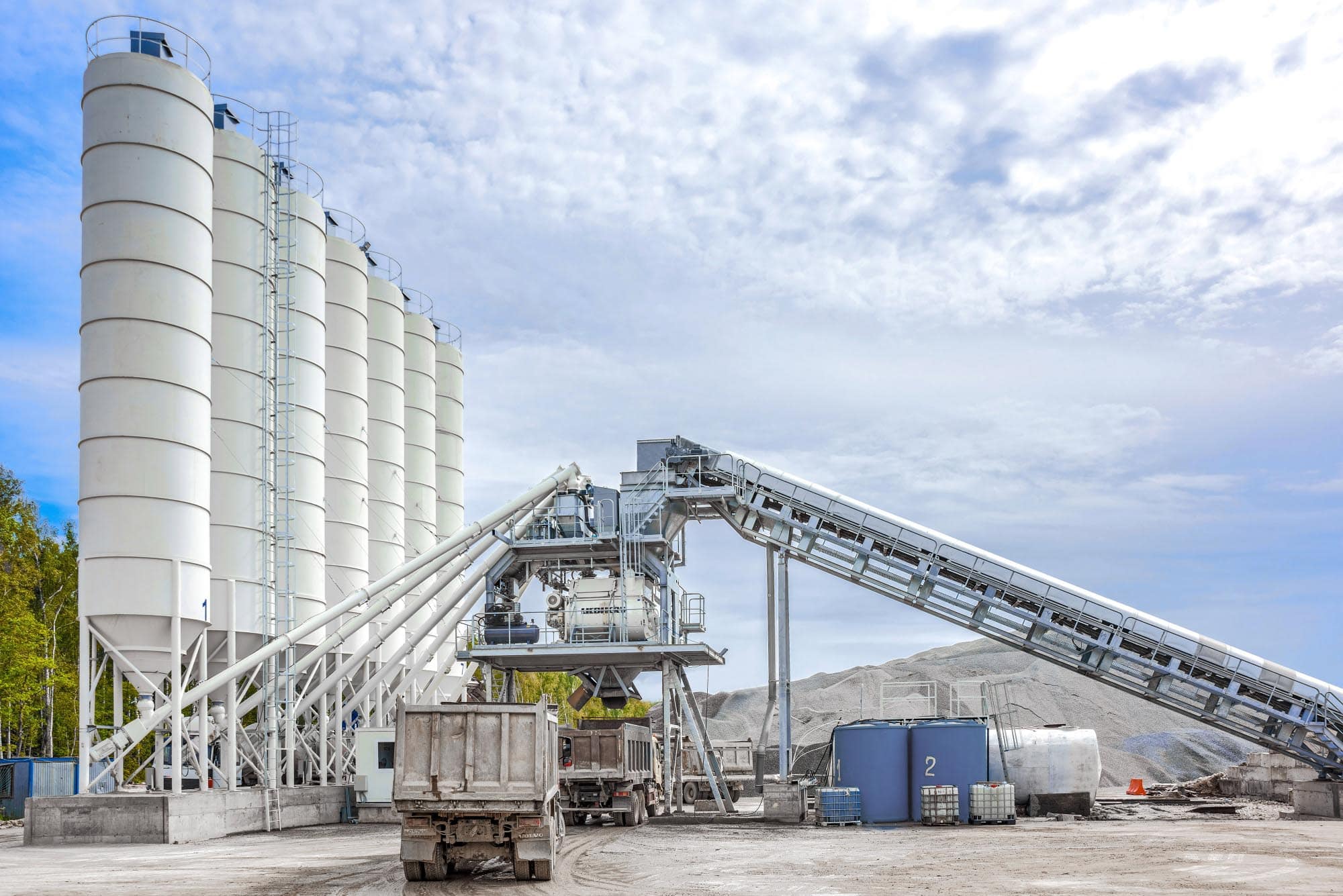 - Система загрузки инертных материалов в смеситель — ленточный конвейер / рифленый ленточный конвейер — 2 комплекта