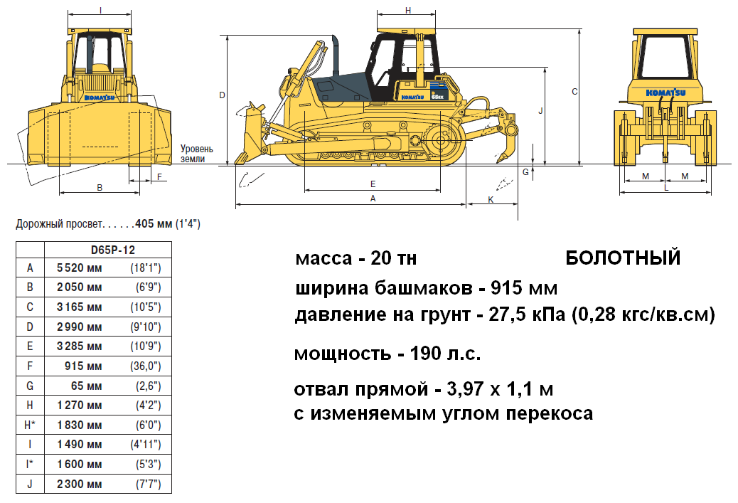 | Длина гусеницы — по земле, мм (фут/дюйм) | 3419 (11 футов 2 дюйма) | |||