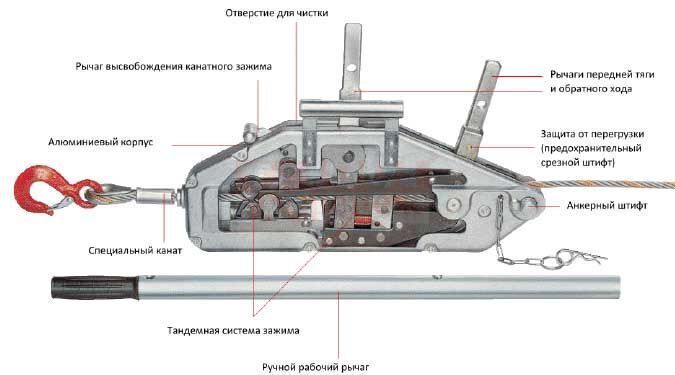 - Подъемники с рычажным приводом можно использовать для тяги в любом направлении, но при этом необходимо поддерживать прямолинейное тяговое усилие.