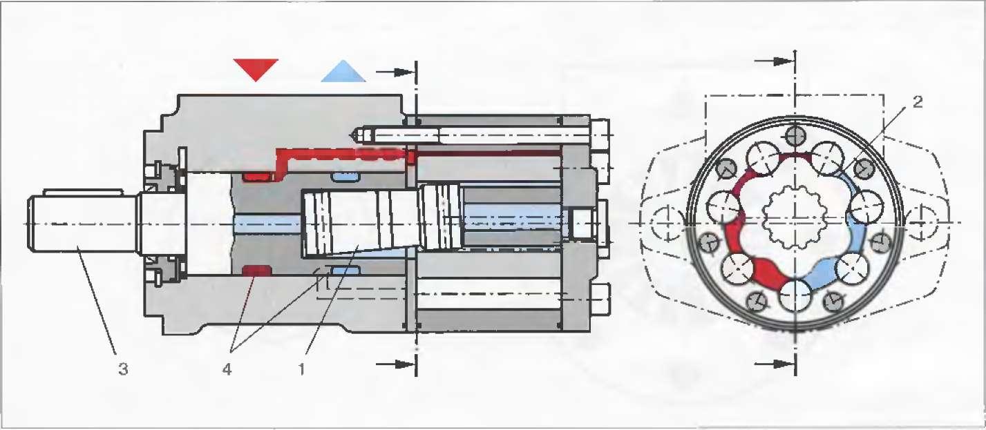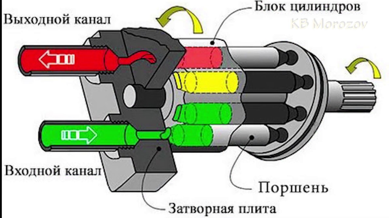 Гидронасос инициирует работу гидродвигателя, создавая необходимый для работы мотора поток рабочей жидкости с заданными параметрами давления и скорости.