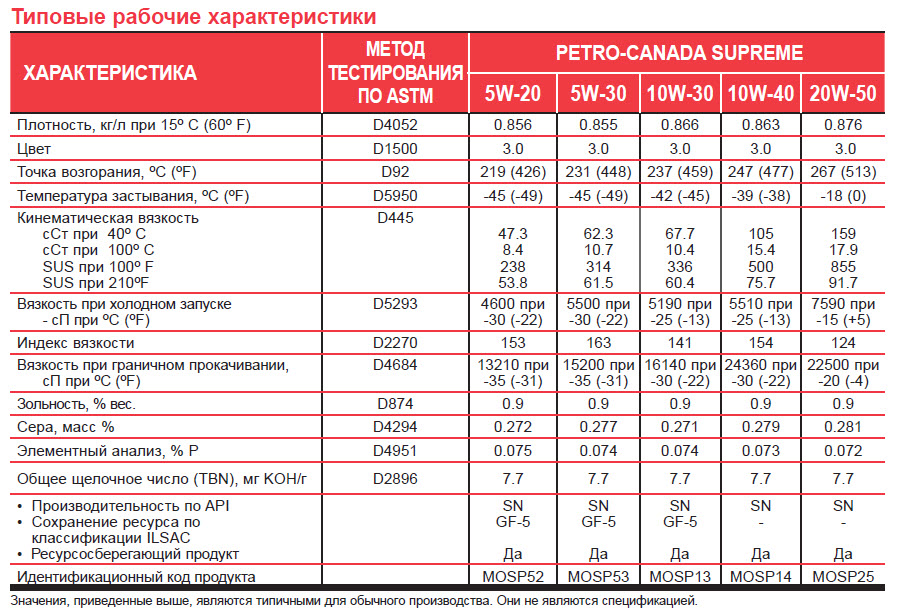Моторное масло имеет следующие характеристики: