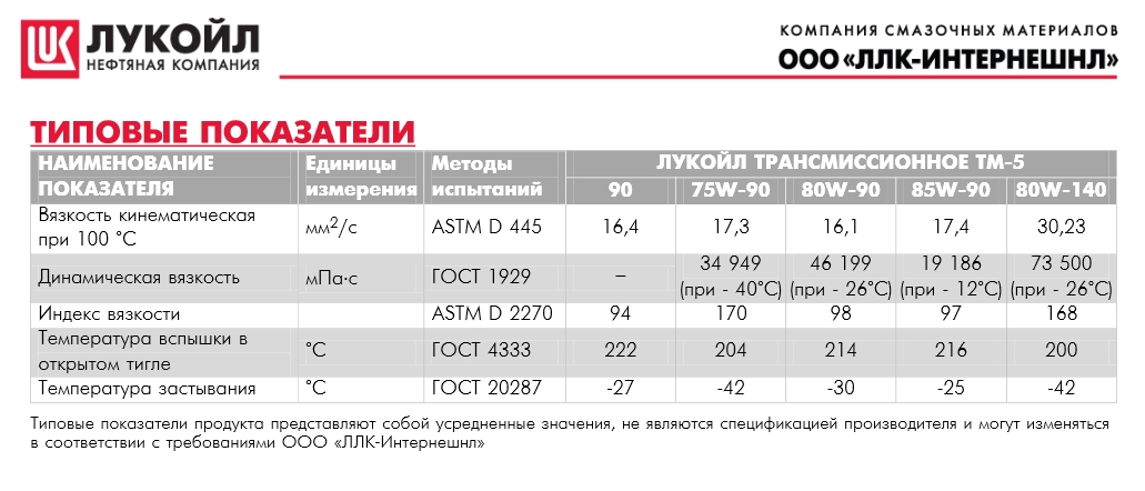 Трансмиссионная жидкость имеет следующие характеристики: