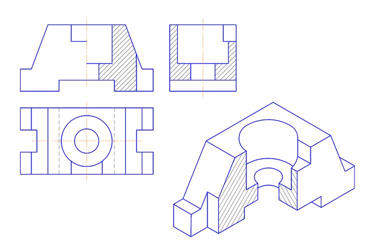 Сечение – это изображение фигуры, получившееся после условного её рассечения. Оно показывает лишь формы детали, не раскрывая остальные сегменты, что располагаются за ним.