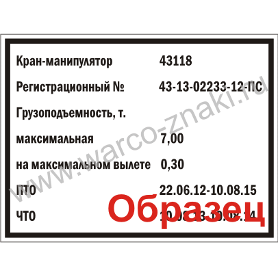 Каждая грузоподъемная машина должна иметь паспорт, установленной формы журналы, документы технического освидетельствования, в которых должны быть указаны: грузоподъемность, регистрационный номер, дата следующего полного технического освидетельствования.