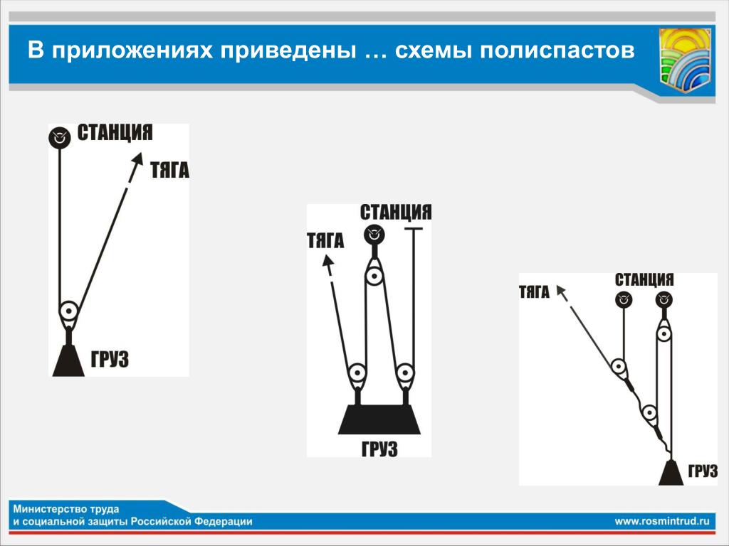 На рисунке 9 показаны практически все основные виды полиспастов, используемые в спасательных работах.