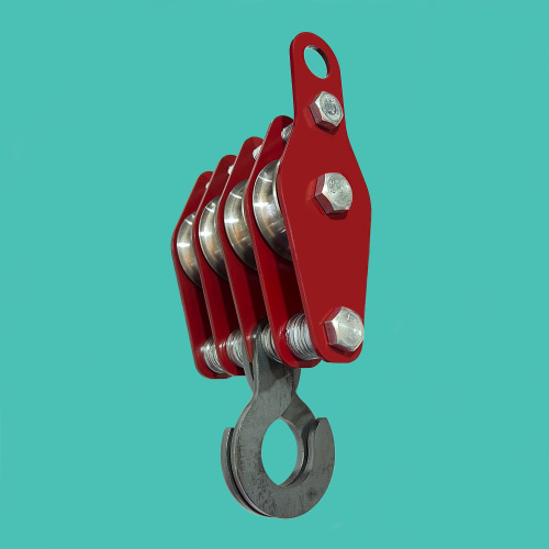 Помимо блоков с состав конструкции включен шкив (металлическое колесо) и канат, выступающий в роли гибкой связи. Материал последних подбирается с учетом веса и габаритных размеров перемещаемых предметов. Высокие показатели надежности имеют изделия из синтетических или стальных волокон.