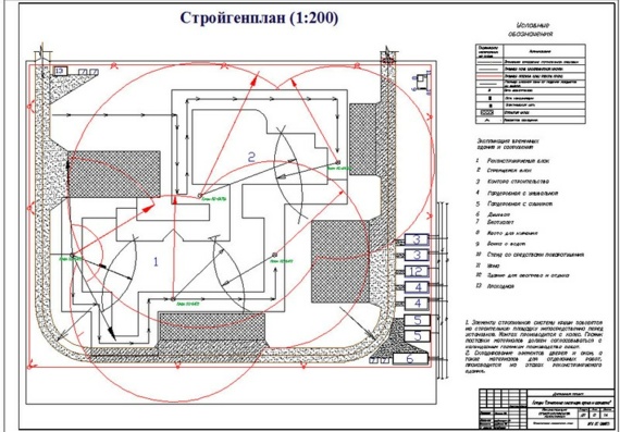 Разработка и выполнение строительного генерального плана предназначено для максимально эффективного обеспечения строительных работ нормативными производственными и санитарно-бытовыми условиями, а также обеспечения приема, хранения и доставки на строящийся объект необходимых стройматериалов для полноценной и бесперебойной работы строителей, строительных машин и механизмов в соответствии с графиком.