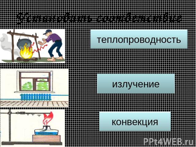 Излучение относится к передаче тепла посредством электромагнитных волн. Теплопроводность — это передача тепла через прямой контакт между двумя объектами. Индукция не является видом теплообмена.