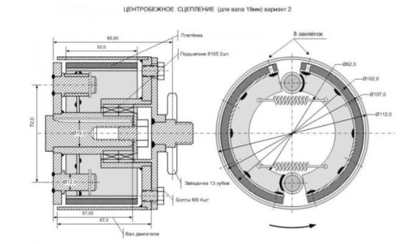 Центробежное сцепление 115 мм на вал 20 мм 1 — ремень Б