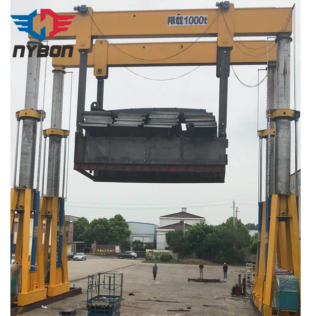 Известны козловые краны, содержащие поддерживаемый опорами мост, на котором монтируются грузовая тележка с подъемным механизмом и блочный противовес, предназначенный для обеспечения равномерности распределения нагрузки на ходовые колеса крана.