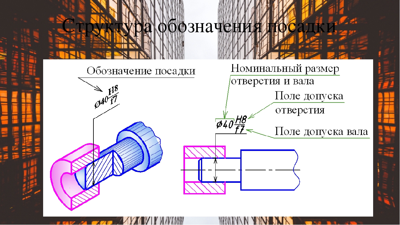 Обозначения посадок и классов точности на чертежах проставляются сразу же за цифрой, указывающей размер, к которому относится данное обозначение.