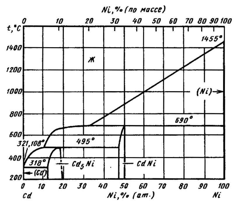 DCF — солидус. Она показывает температуру конца кристаллизации сплавов. Ниже этой линии все сплавы системы находятся в твердом состоянии.