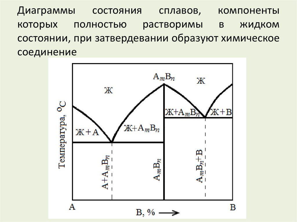 АВС — ликвидус. Она показывает температуру начала кристаллизации сплавов при охлаждении.