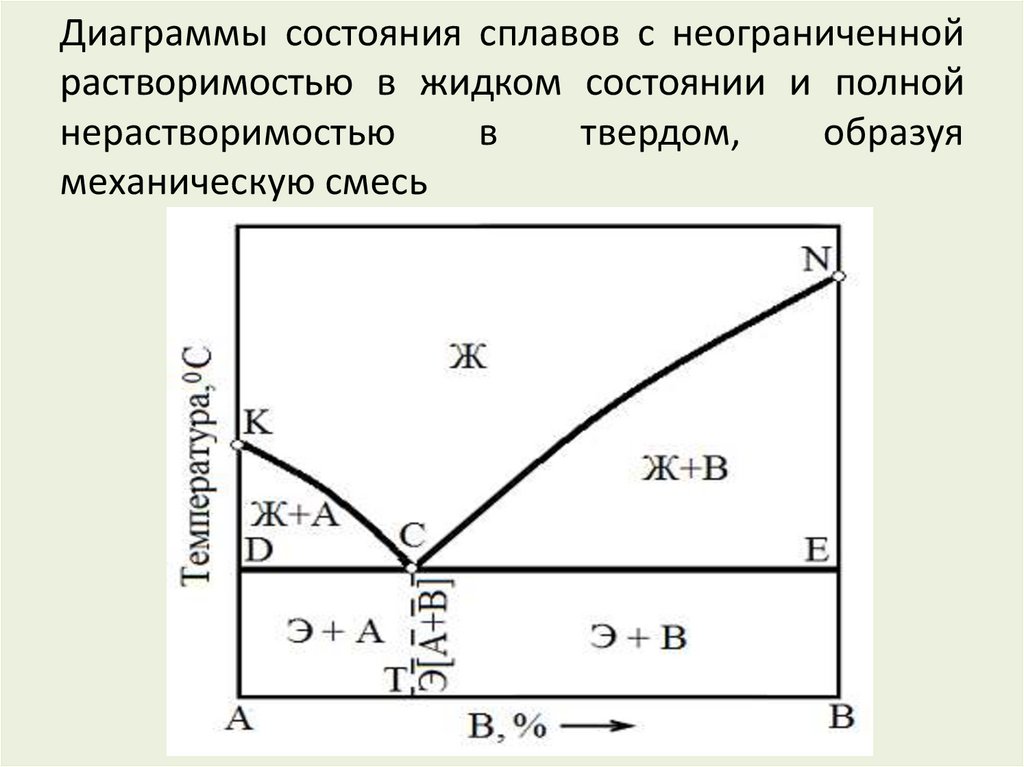 Диаграмма состояния для сплавов, образующих механические смеси из чистых компонентов (I рода)