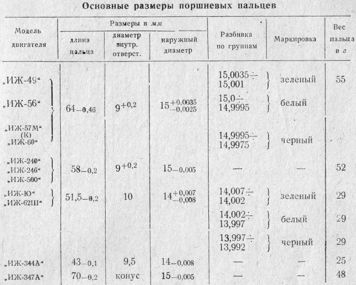 Подбор поршневого пальца