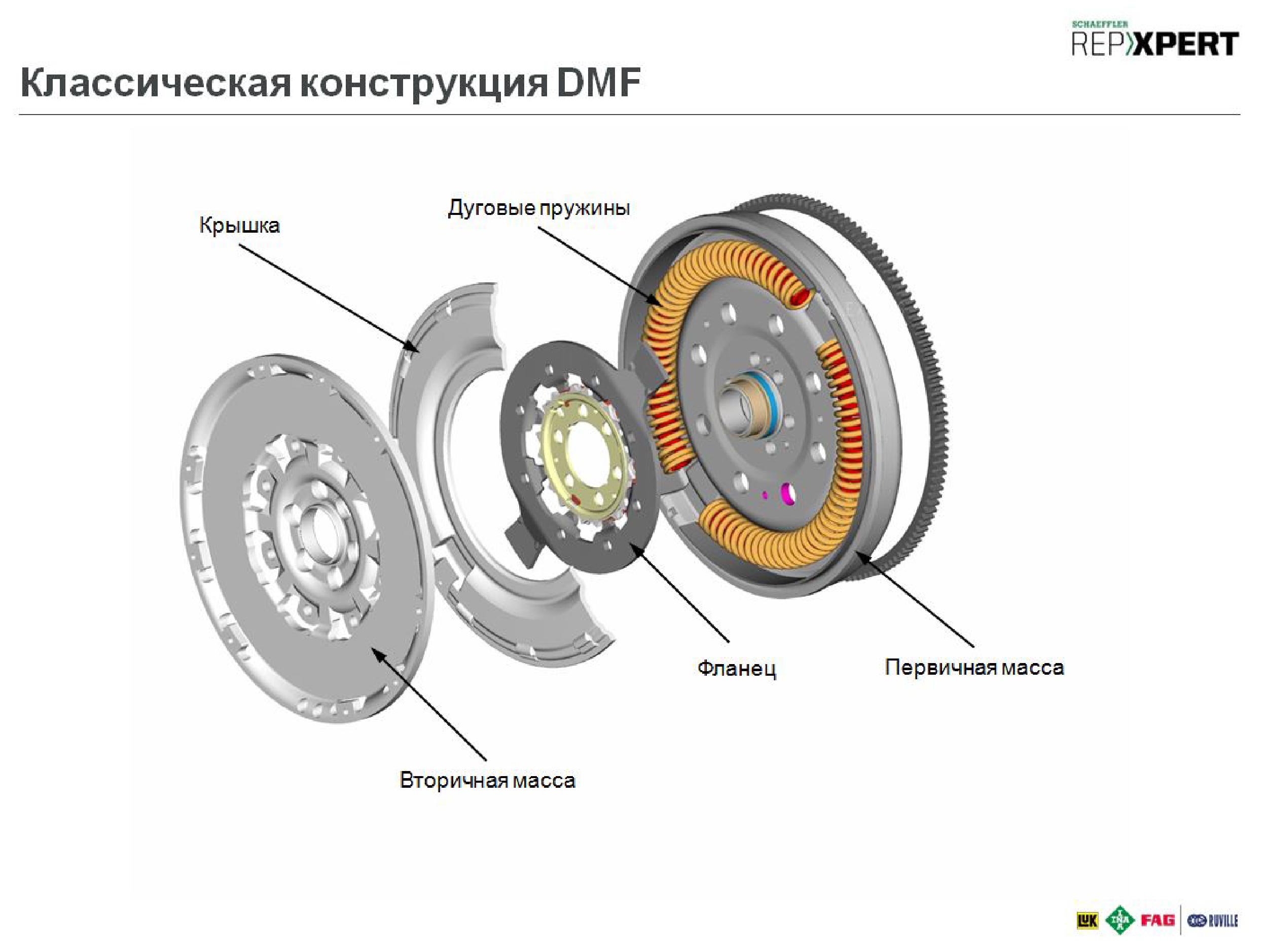 Двухмассовые модели характеризуются поломками, устранить которые будет куда сложнее. Речь идет о выходе из строя либо полном разрушении пружин, об износе подшипников и прочих деталей, часто подвергаемых трению.