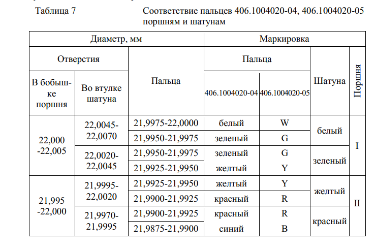 Разность массы поршней одного комплекта не должна превышать 10 г.