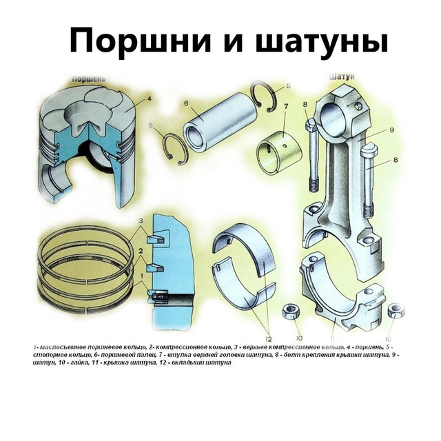Зеркало гильз цилиндров, поршни с поршневыми кольцами, шатунные шейки