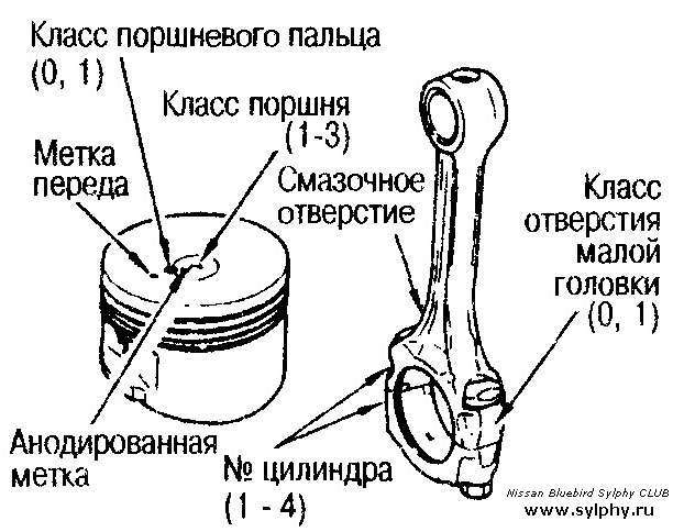 Поршни одного комплекта на моторе должны быть одной размерной группы,