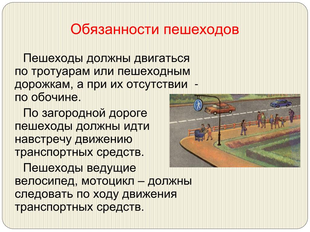 Возьмите за привычку снижать скорость в ожидании появления подобных путешественников, особенно вблизи зон с ограниченной видимостью-перед изгибами дороги, крутыми поворотами, выступами, холмами. В любом случае, завидев издали пешехода, будьте осторожны и ожидайте, что он, возможно, будет перебегать дорогу. Кроме того, всегда неожиданным бывает появление людей из-за припаркованных автомобилей.