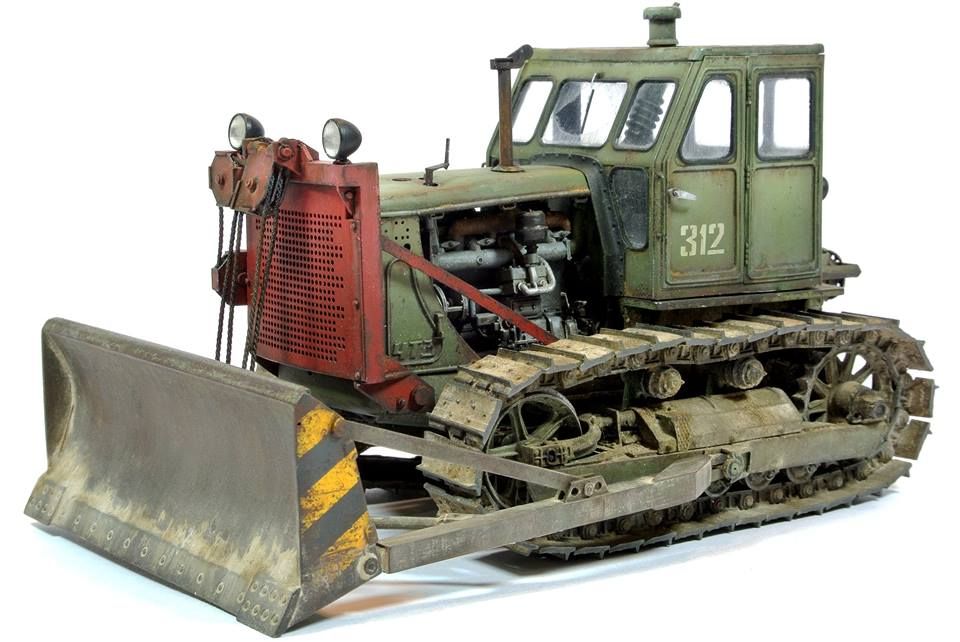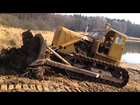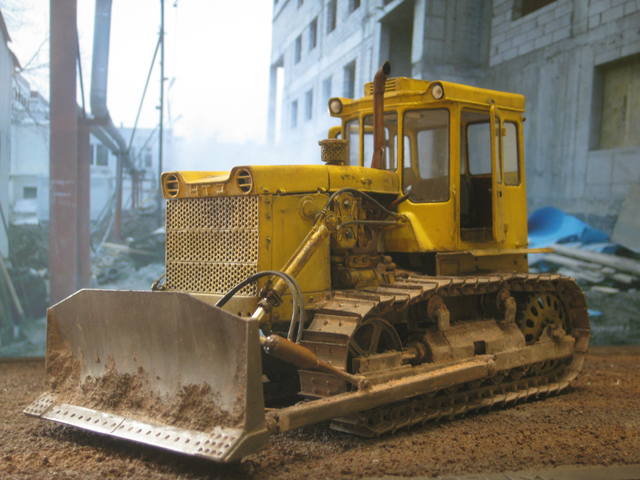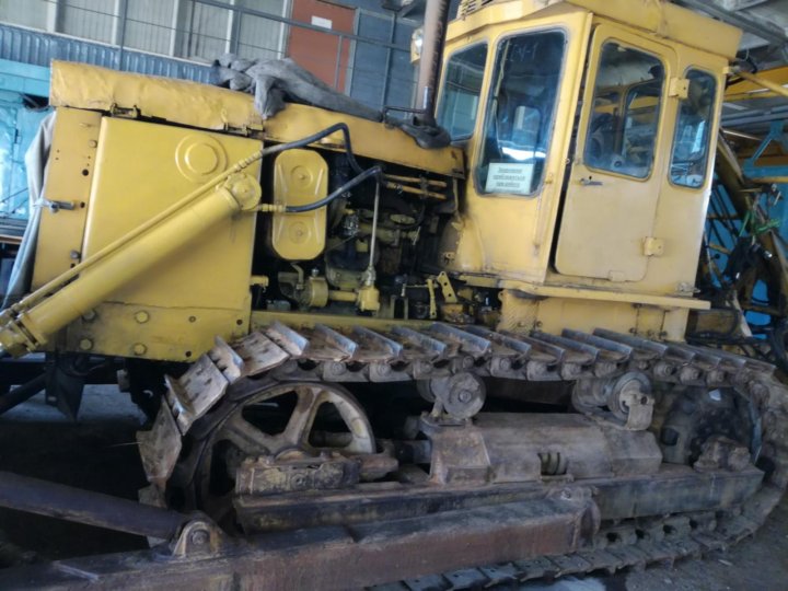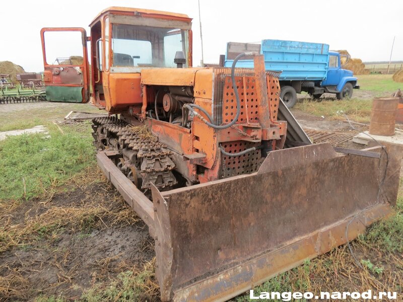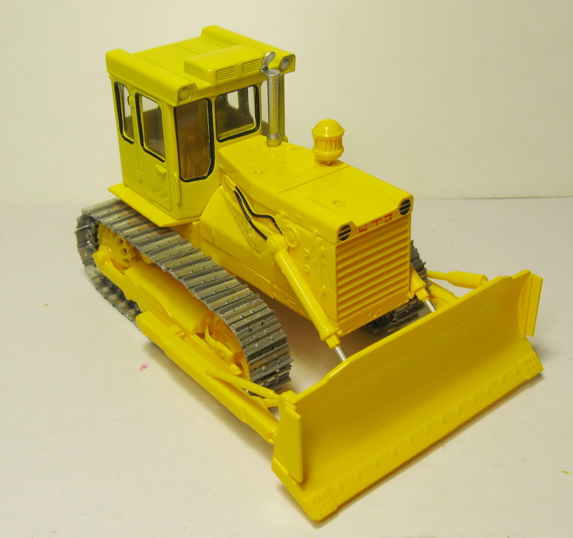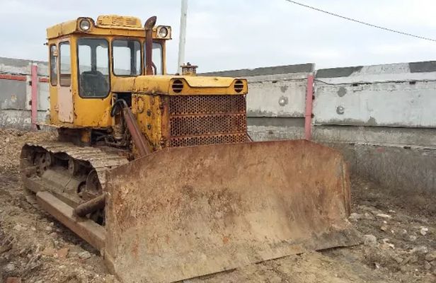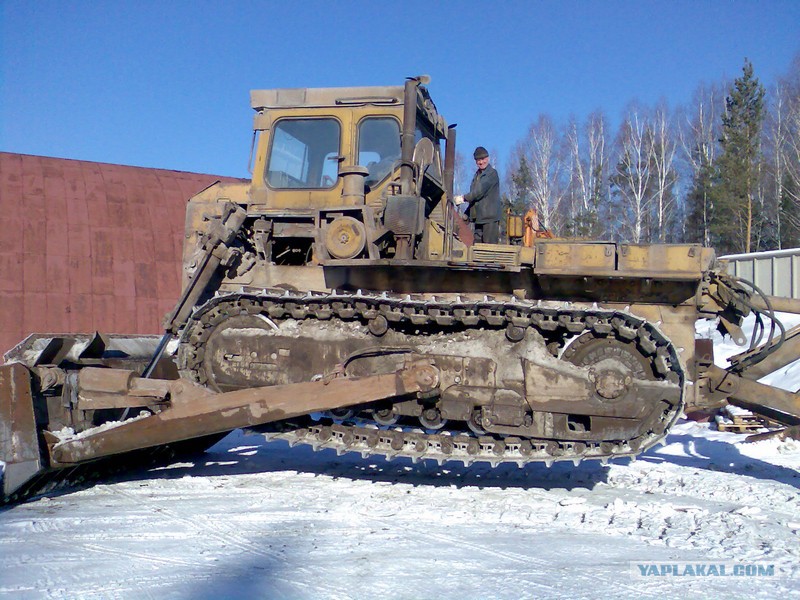 На этом бульдозере установлен неповоротный отвал с гидравлическим приводом. Сверху отвал оснащен козырьком, а с боков — уширителями. С нижней стороны на лобовом месте закреплены режущие ножи.