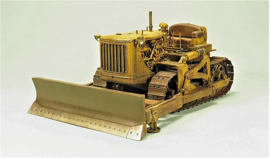 Бульдозер Caterpillar D7E на синем фоне