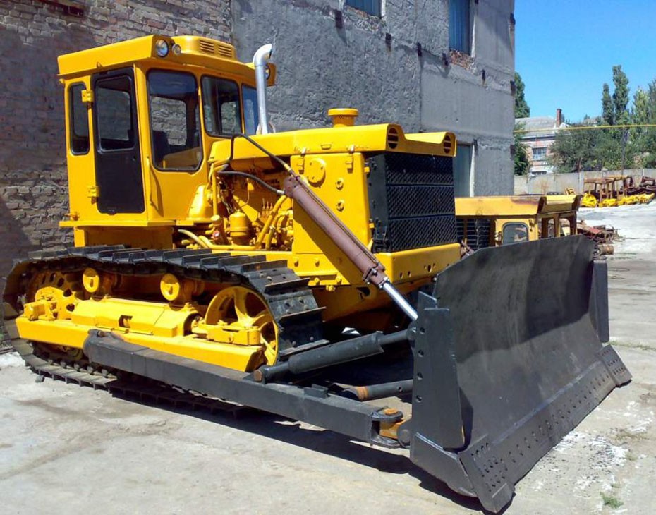 Бульдозерным оборудованием служит полусферический неповоротный отвал с перекосом вправо и влево, управляемый двумя гидроцилиндрами.