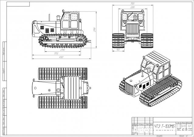 ДЗ-109 — Бульдозер на базе Т-130 | Скачать чертежи, чертежи, блоки Autocad, 3D модели