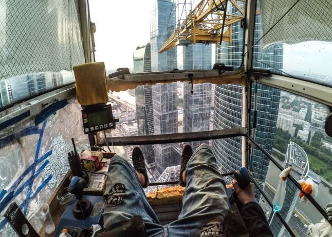 Вы когда-нибудь задумывались, на что похожа жизнь оператора башенного крана? Тебе лучше пристегнуться, если ты боишься высоты.