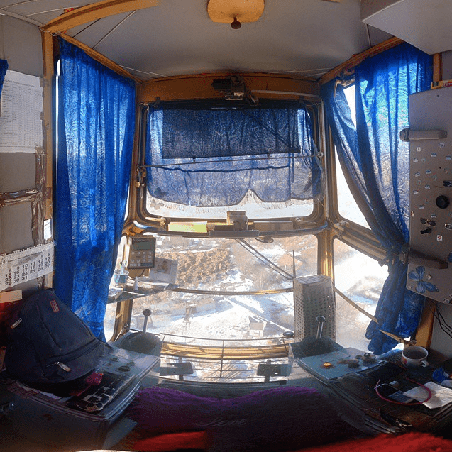 В кабине стоит кресло, которое откидывается назад. Светлана на нем спит во время обеденного перерыва. Еду разогревает рядом с печкой-обогревателем. Тут же стоит и горшок, чтобы ходить в туалет.
