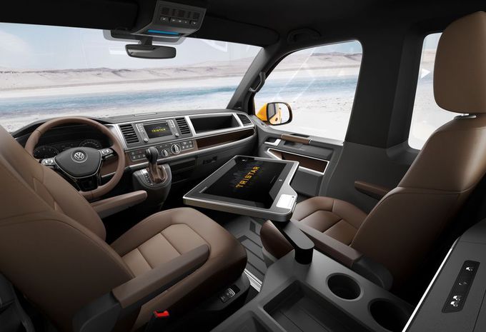 В списке новых опций розетка на 230 Вл расположенная в непосредственной близости с креслом водителя, запираемый на ключ ящик для мелкой поклажи под двухместным пассажирским сиденьем или сквозной тоннель под сиденьями для пассажиров, позволяющий увеличить длину грузового отсека у коротко-образного Мультивэна до 2800 мм, а у длинно-образной версии до 3300 мм.