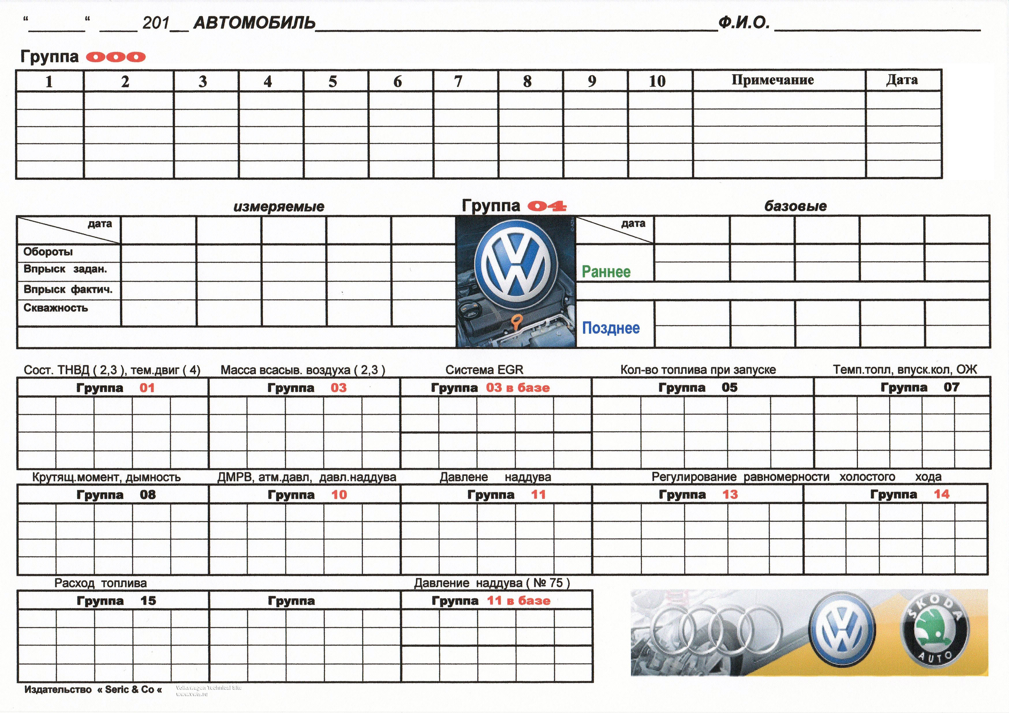 В таблице описаны средние расходы топлива по разным маркам Фольксваген.