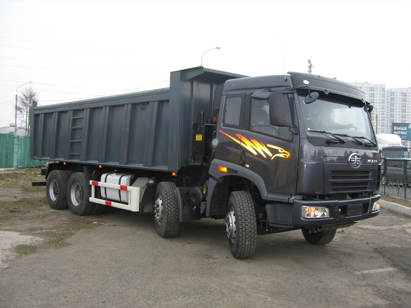 Кабины самосвалов FAW – только спальные, дневных не бывает. Переход с поколения J5P на J6 произошел одновременно с переходом на экологический класс Евро-4. В Россию первые товарные самосвалы FAW J6 поступили в 2012 году, ранее завезенные «джей пятые» продолжали продавать до конца 2013 года. В отличие от европейских фирм, импортирующих, как правило, шасси для установки самосвальных кузовов уже на территории России, FAW поставляет в нашу страну полностью комплектные машины с китайскими же кузовами. Гидрооборудование надстройки – авторитетной марки Hyva. Разумеется, не родного голландского производства, а тоже произведенное в Китае.