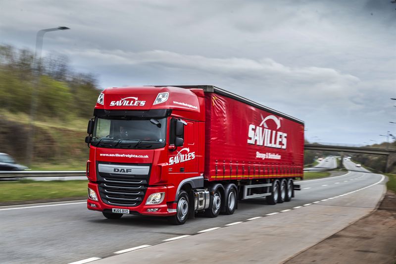 Jcl логистика грузовик daf xf с прицепом-тентом на автомагистрали.