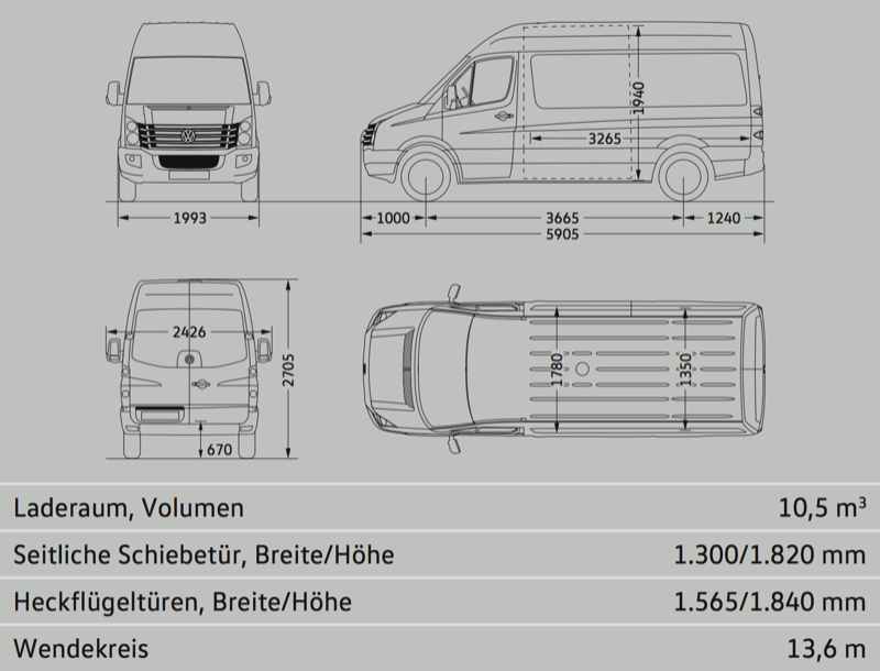 | Crafter 35 шасси Одиночная кабина | база 3250 мм (короткая) / база 3665 мм (средняя) / база 4325 мм (длинная) |