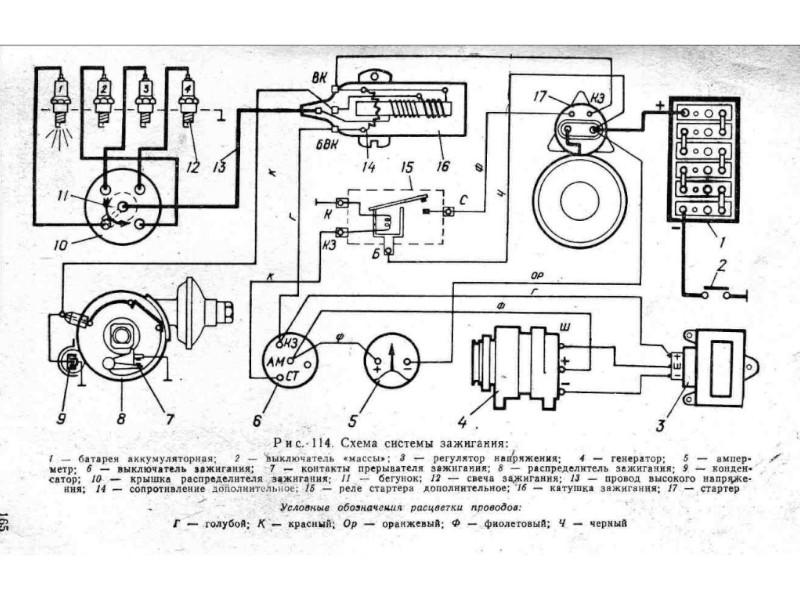 Схема подключения генератора зависит от модели устройства. На корпусе Г12 имеются 3 точки подсоединения проводки. Клемма с буквой Я подключена к положительной щетке, к контакту К подведен вывод обмотки возбуждения. Отрицательная щетка и другой конец обмотки замкнуты на корпус генератора. Клемма М используется для установки провода, ведущего к отдельному блоку реле регулятора.