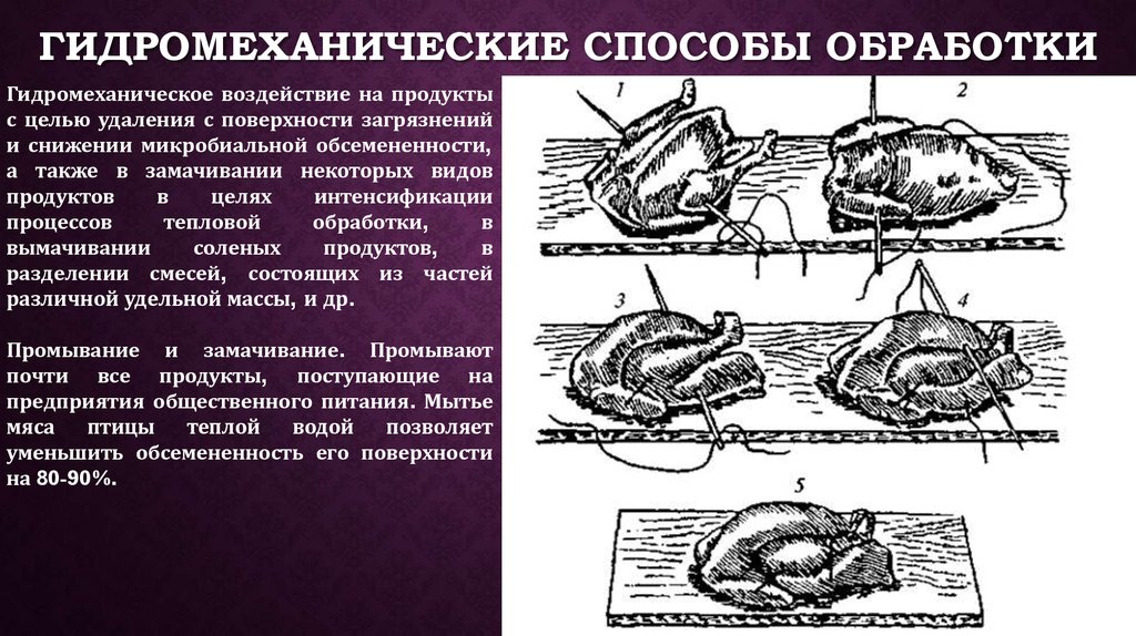 Мытьё мяса тёплой водой при помощи щётки-душа позволяет уменьшить обсемененность его поверхности на 80-90%.