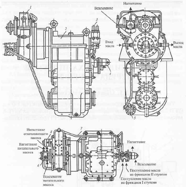- гидравлика с тремя гидроаппаратами: 2-мя одноступенчатыми гидротрансформаторами и 1-й гидромуфтой с радиальными лопастями;