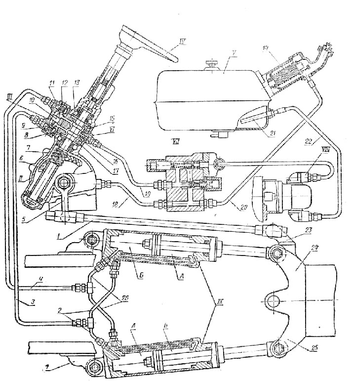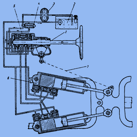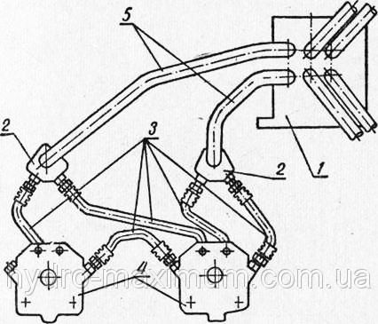 распределителю; 5 — маслопроводы от силового цилиндра к