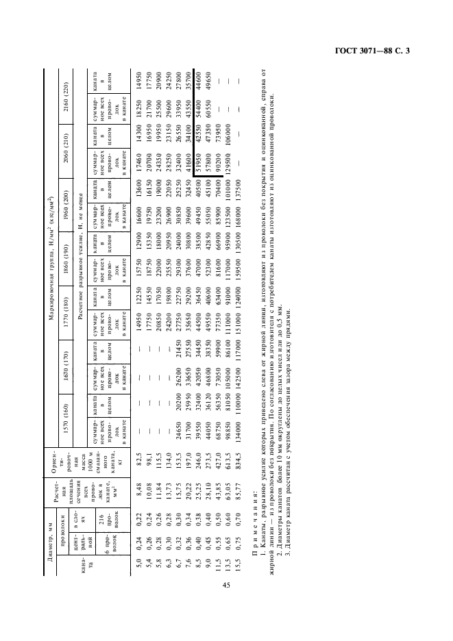 Трос ГОСТ 3071, разрывное усилие которого приведено слева от жирной линии изготовляют из проволоки без покрытия и оцинкованной, справа от жирной линии – из проволоки без покрытия. По согласованию изготовителя с потребителем трос ГОСТ 3071 изготовляют из оцинкованной проволоки.