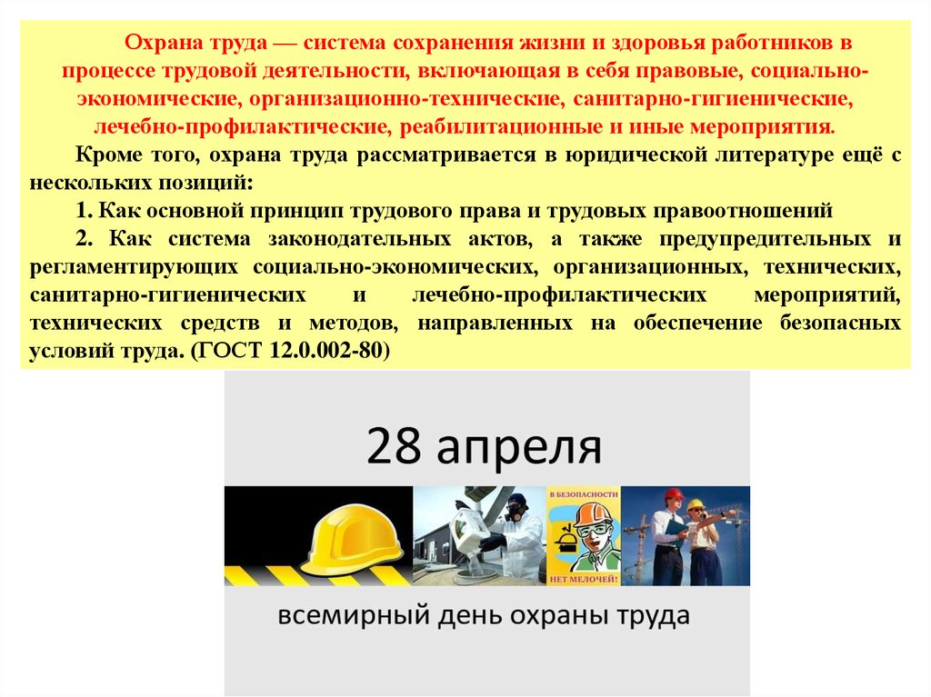 Чтобы достичь эффективности функционирования системы охраны и безопасности труда, был разработан комплекс внутригосударственных и международных нормативов, четко определяющих стратегию предупреждения производственных рисков.